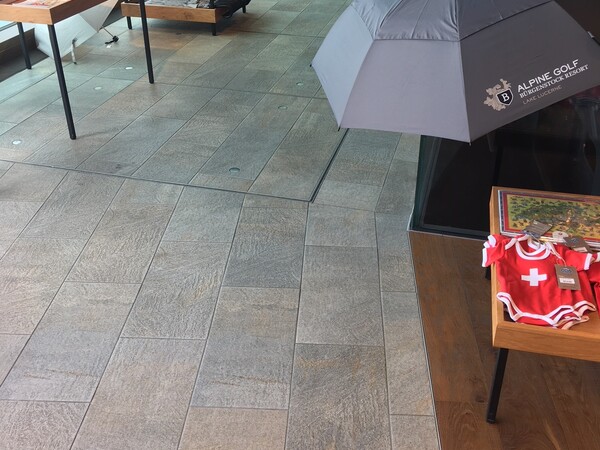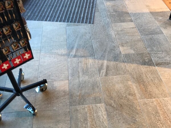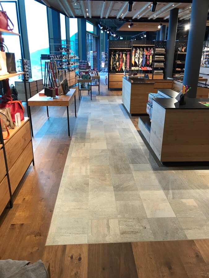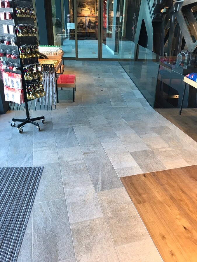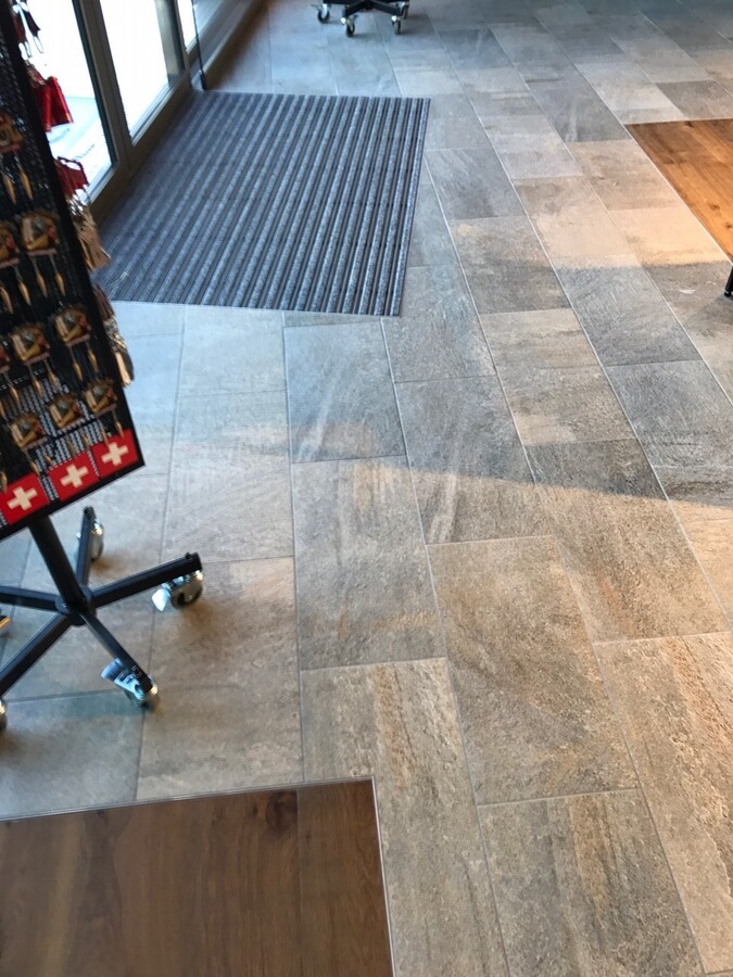 Plattenarbeiten im Touristen Shop. Feriengäste aus vielen Nationen laufen über unsere Beläge.