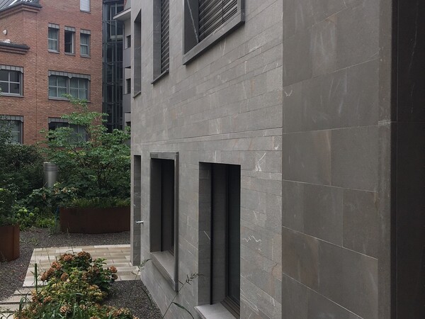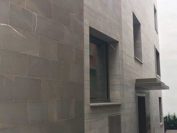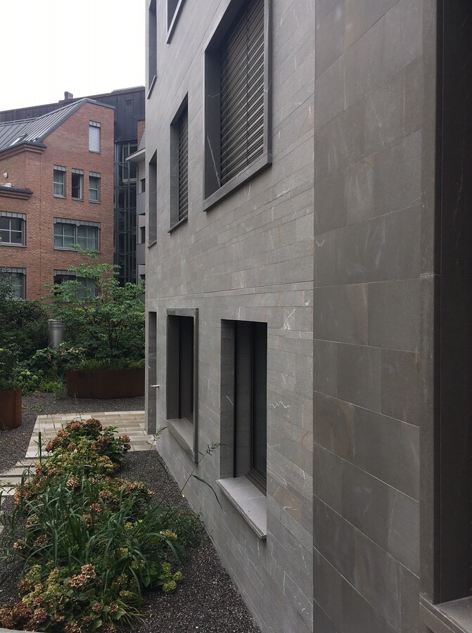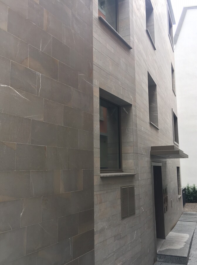 Naturstein Pietra Piasentina, Systemaufbau Weber Marmoran, Natursteingewänder und Bänke Pietra Piasentina