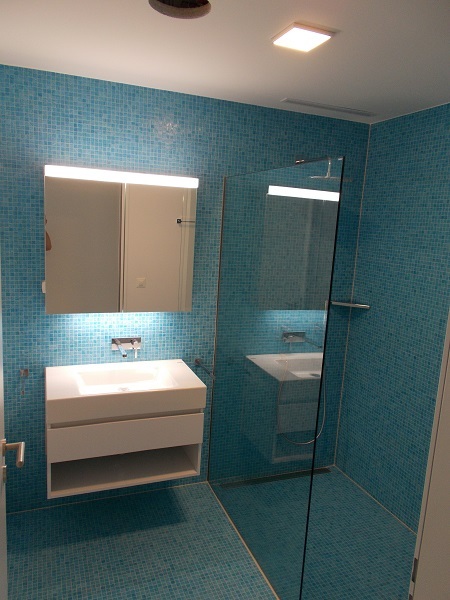 Bei den 36 Eigentumswohnungen wie auch 6 Reihenhäuser welche nach Kundenwunsch ausgebaut wurden, durften wir von Glasmosaik, Natursteinverblender, Keramik, Naturstein bis zum Holzimitat individuelle Ideen umsetzten und verwirklichen.