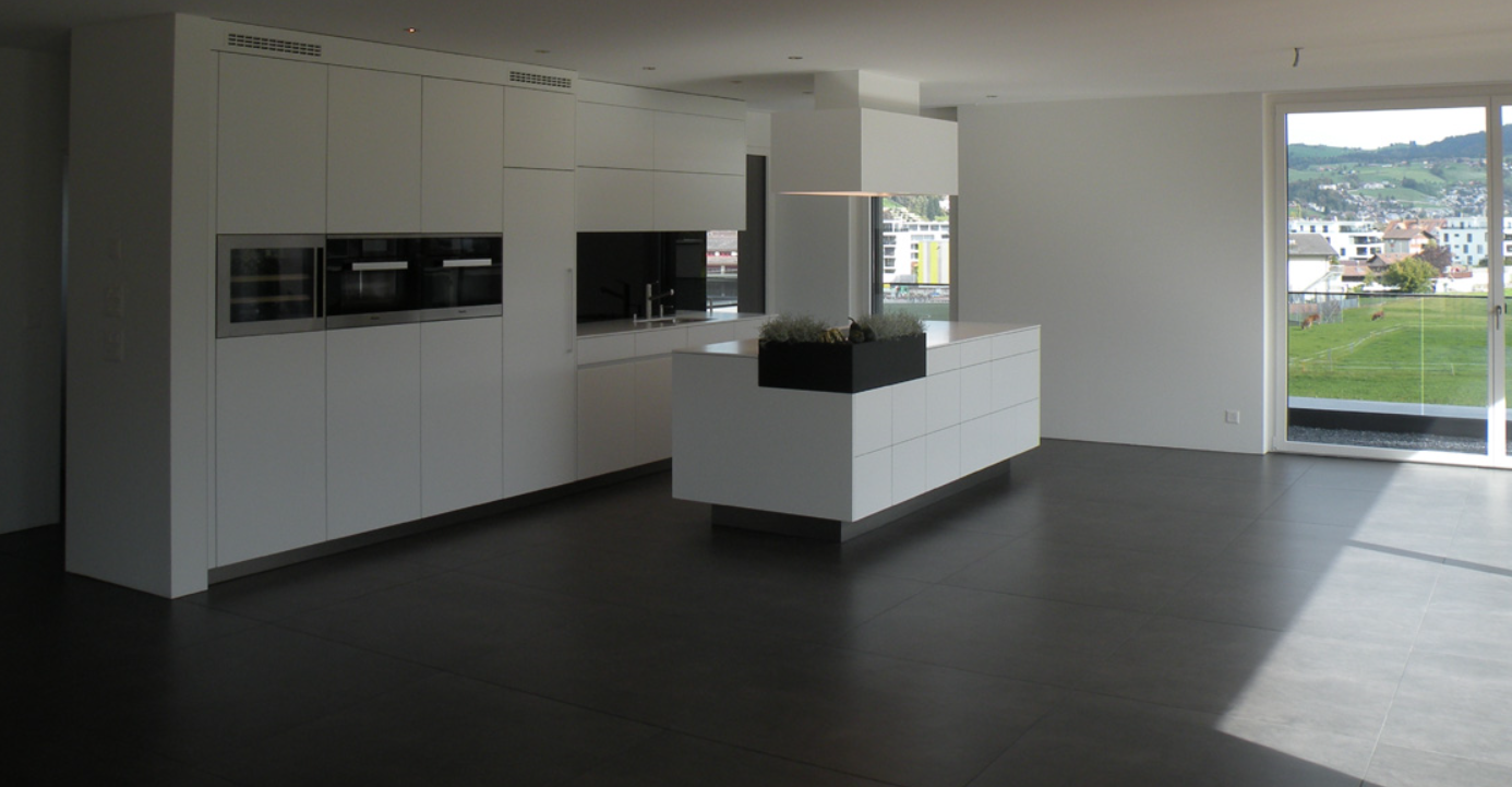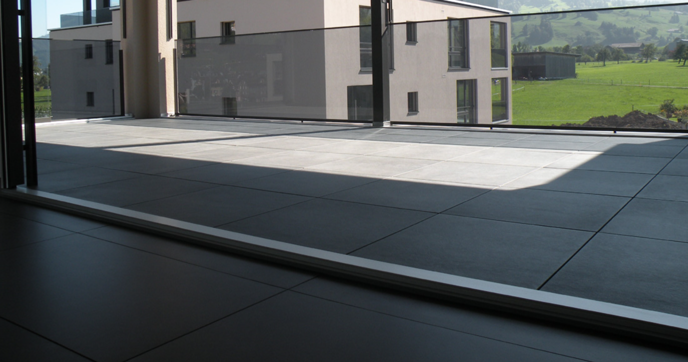 18 Miet- sowie 2 Attikawohnungen mit keramischen Grossformatplatten im Wohnbereich sowie Nasszellen. Die Terrassenbeläge durften wir mit 20mm starken keramischen Platten ebenfalls nach Käuferauswahl auf Stelzlager ausstatten.